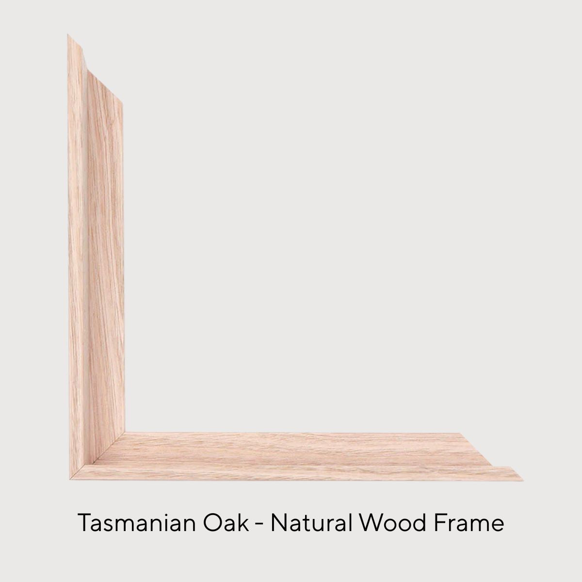 FRAMED: Stretched and beautifully framed in a natural wood Tasmanian Oak floater frame - ready to hang, no hardware or assembly needed